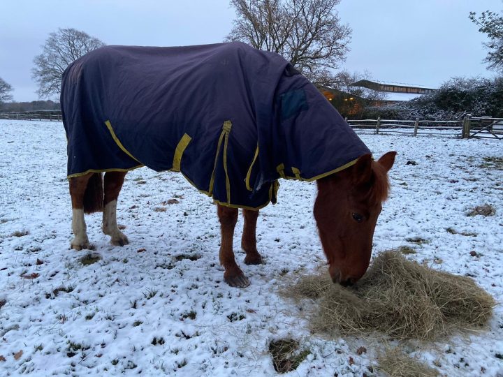 Ensure that horses that are kept outside have access to a shelter or surface where they can retreat to in cold and wet weather as well as plenty of suitable bedding. We also use appropriate rugs for some of our horses and ponies too.