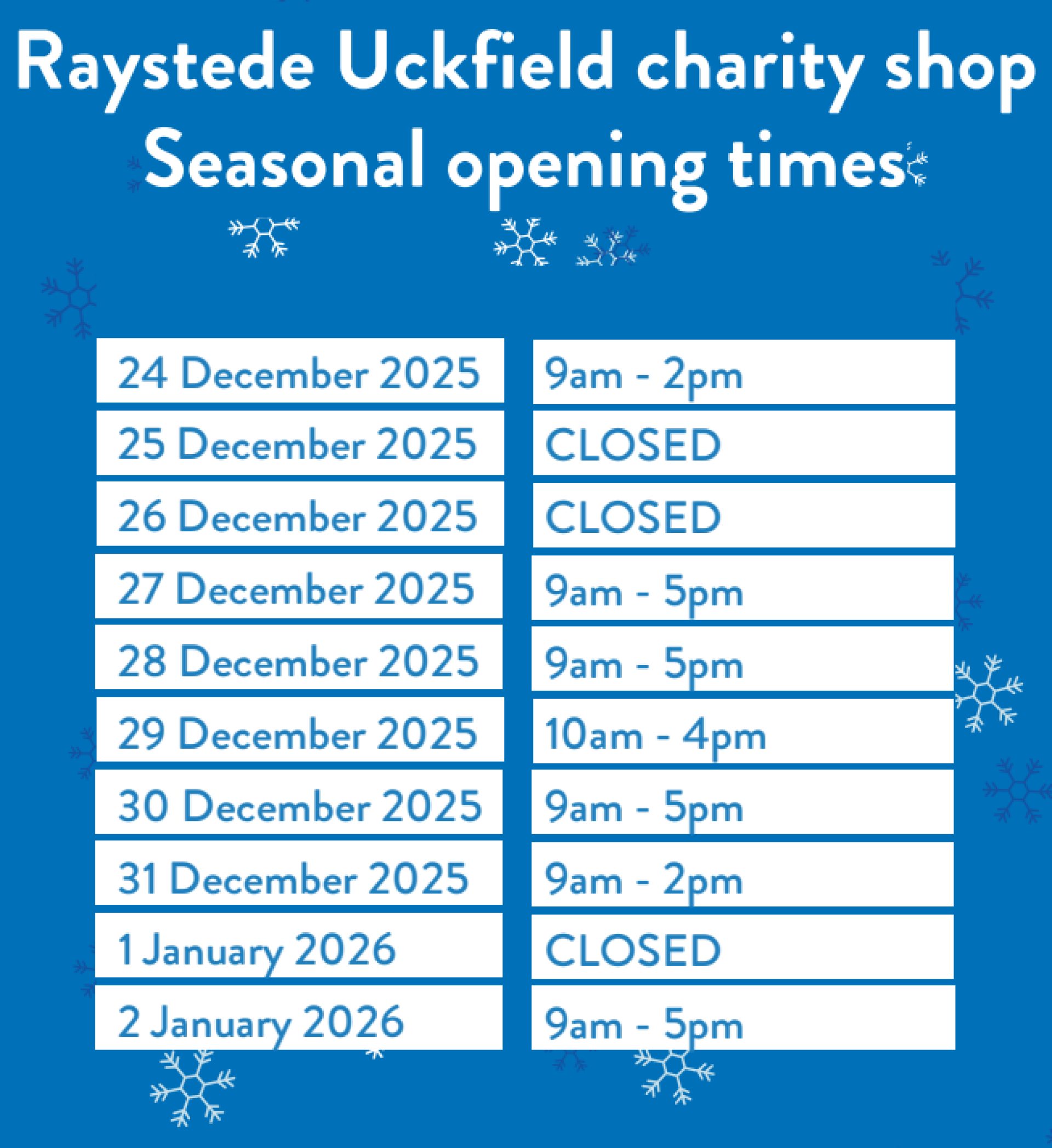 Open 7 days a week: Monday to Saturday 9am - 5pm
